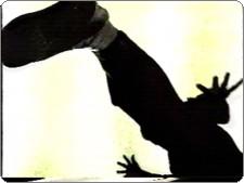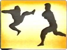 | Two shadows going at it.. must be a kung fu game. | "No one can withstand my shadow kick." | Back away from the TV or you'll get nailed by the punching scene. |