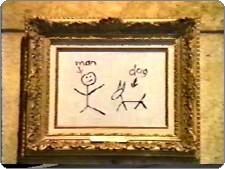 "Behold the works of Gabriel Von Sanchez. His art was ambitious in scope. His masterpiece was of course the Dance of the Edacious. Brilliant. Sanchez then began playing Ultima: Exodus, the role-paying game from FCI. It was a strange turn. Sanchez loved the game and he spent less and less time in the studio. He was never the same. Consider Man With Dog."