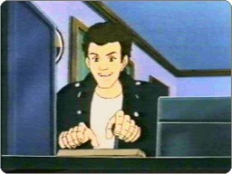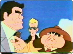 | Mr. Big giving some orders to his cronies. | The aniamted Johnny Arcade gets in on the video action. |